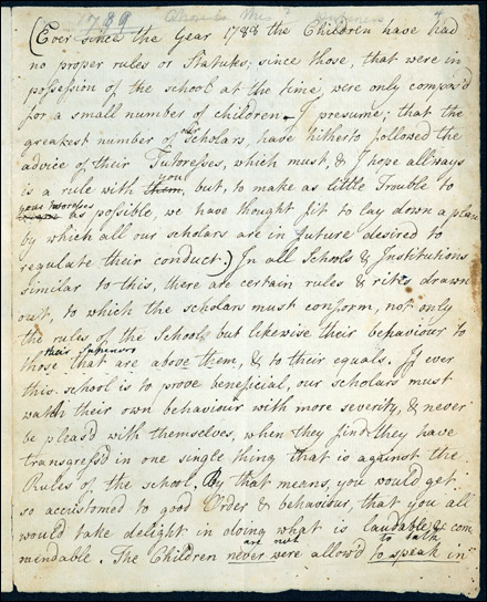Draft of House Rules for the Girls’ School in Bethlehem to which the Sisters who are employed in the training of the Little Girls and Older Girls are to consider themselves bound written by Johann Andreas Hübner, school principal (1785-1790).