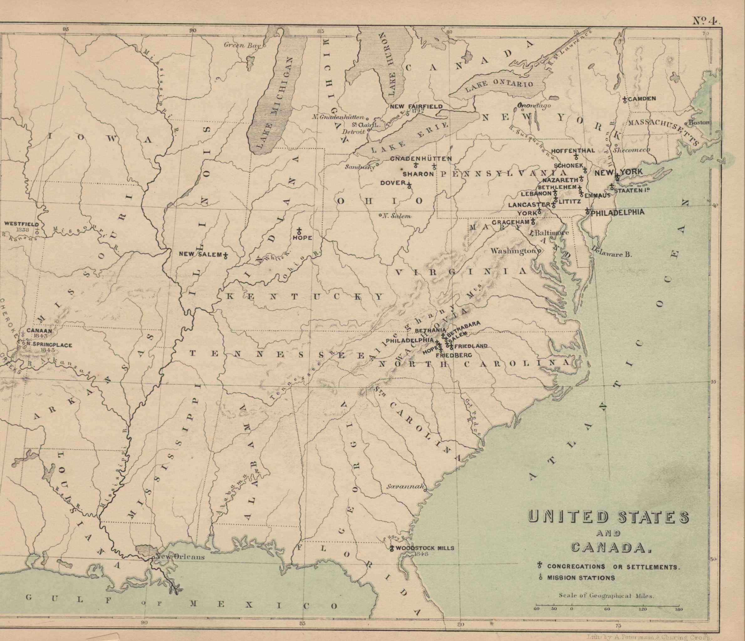 Plate number 4 from The Moravian Atlas digitized by the Bethlehem Digital History Project.