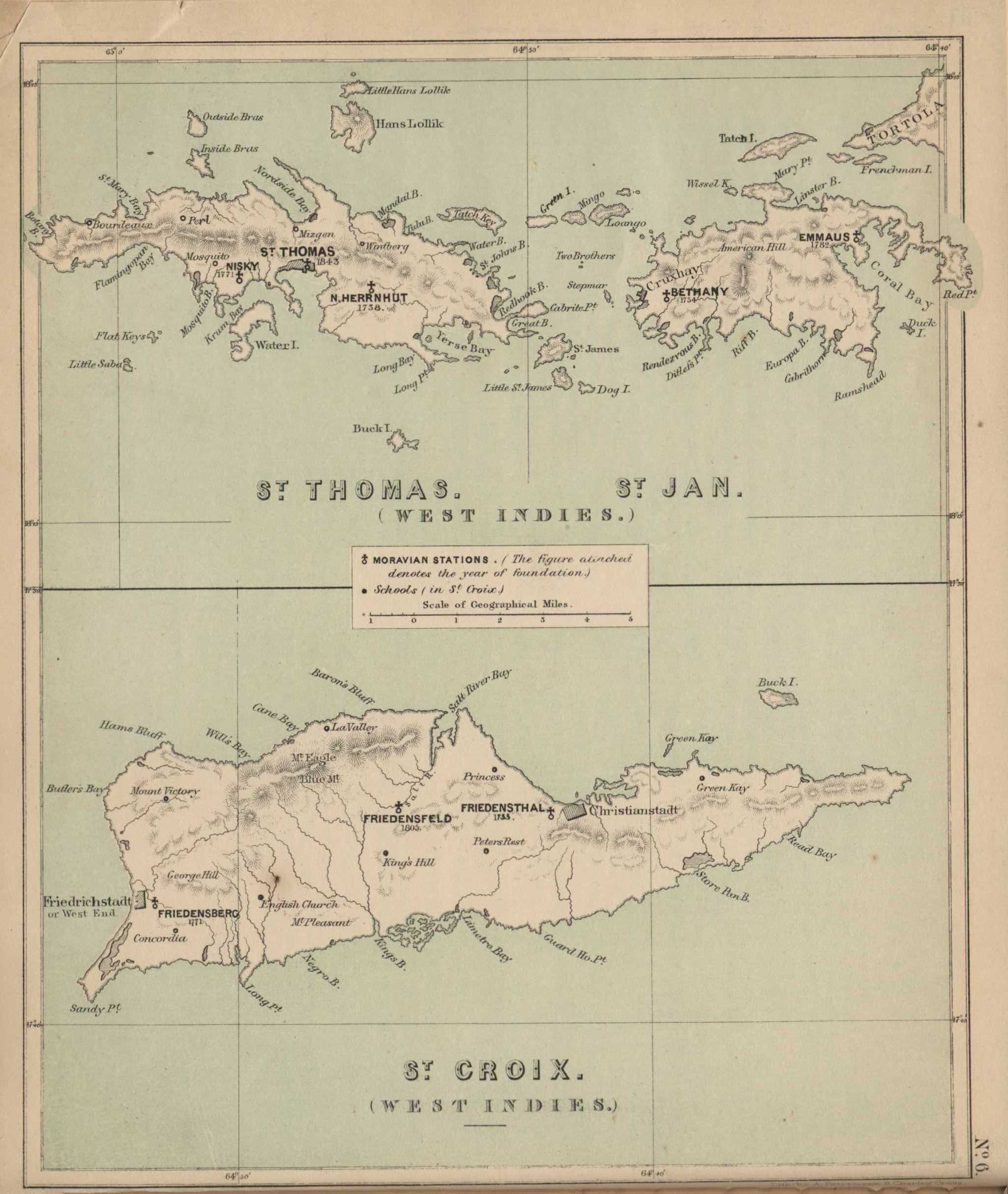 The Moravian Atlas: Map of the Saint Thomas, Saint Jan. and Saint Croix