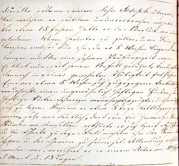 geladenen Wagen herunter zu fallen, u. ein Bein zu