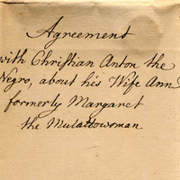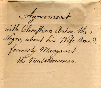 Agreement with Christian Anton the Negro, about his Wife Ann C. formerly Margaret the Mulatto woman.