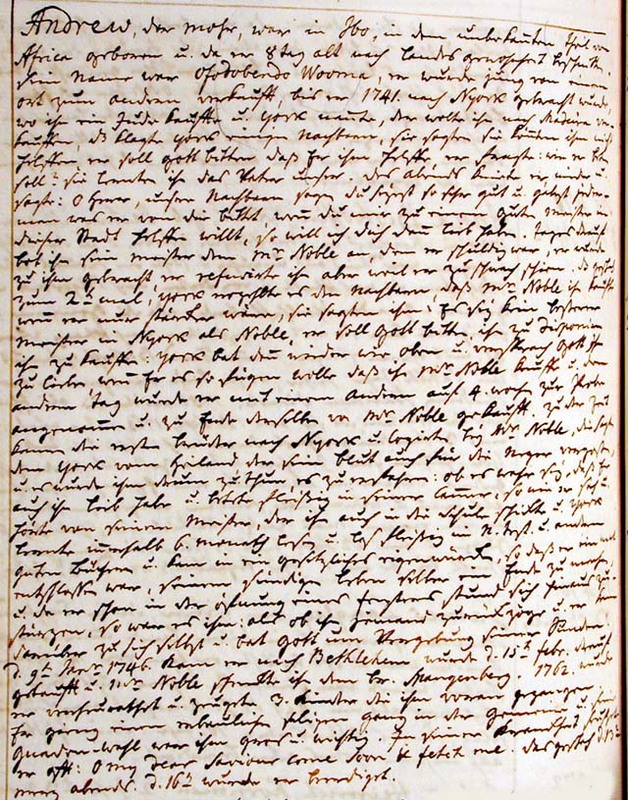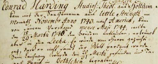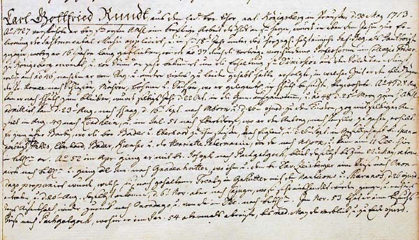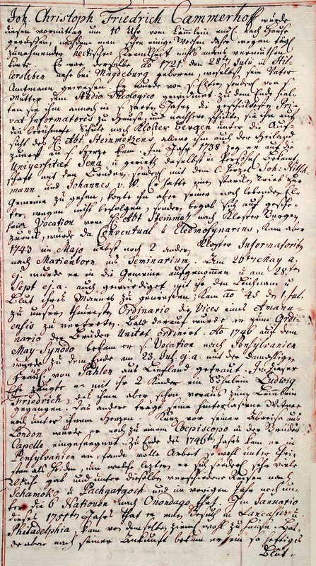 This the death notification in the church register for Carl Gottfried Rundt, which occurred in Bethlehem, Pennsylvania, in 1764. The entry in the register includes a biography.