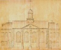 Central Moravian Church represents an architectural adaptation of the local Moravian Church architectural style of Bethlehem’s eighteenth-century buildings. Built in Federal (Adam) Style popular at the time, it is constructed of limestone covered with stucco, measuring 44.2 m x 21.3 m. The plan of the church is traditionally Moravian with the sanctuary in the centre with pavilions at the east and west ends, and separate entrances for men and women. The pavilions are two and a half storeys with a raised basement at the western end to accommodate the kitchen for food preparation for special services. The central section is one storey with attic and basement, no interior columns, and Belfry centred above. It is modelled on the Moravian Church in Herrnhut and had an original capacity of 1,200 people. The current apse was installed in 1905.
